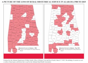 In 1980, 45 of Alabama’s 55 rural counties were home to hospitals that offered labor and delivery services. In 2025, only 15 of those counties have hospitals providing obstetrical services, according to data from the Alabama Department of Public Health.