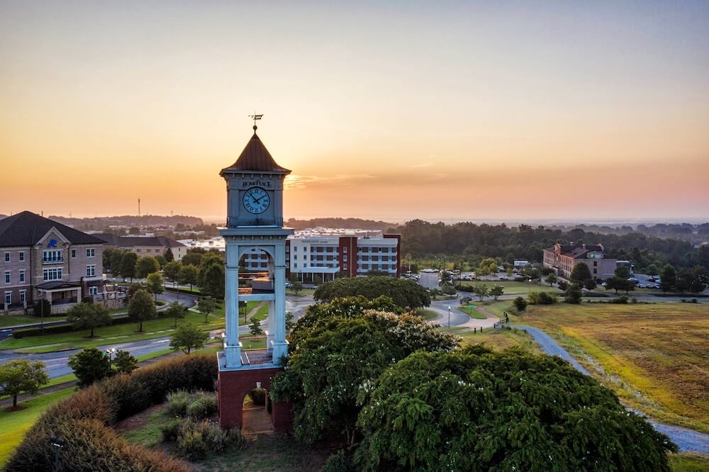 Home Place is a master-planned, mixed-use development in Prattville that features retail, business parks and residential areas. Pictured is the clock tower at the development.